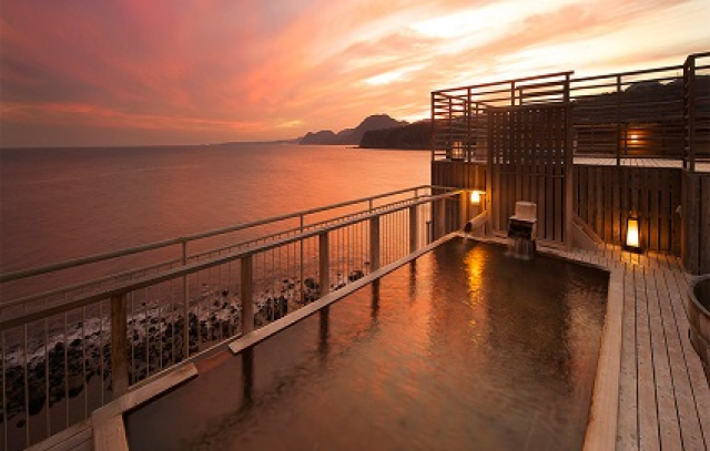 石花海の海を一望できる、開放感あふれる露天風呂