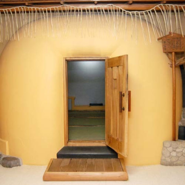 60℃の室内で静かに横たわり、ゆっくり体を温めるかま風呂
