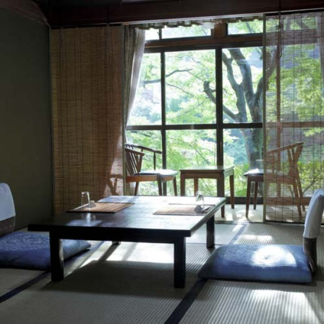 お食事は高野川のせせらぎが心地よい個室でお出ししています。