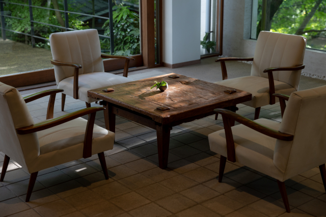 木漏れ日の光と影が交錯する ロビー