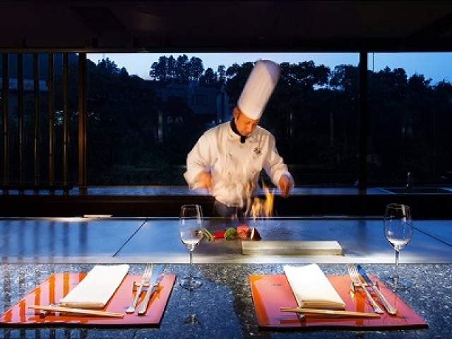 【吉祥やまなか】鉄板焼『青竹』/ シェフが鮮やかなパフォーマンスを繰り広げる