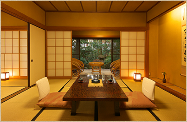 和風木造離れ8棟の竹林にかこまれた静かな四季折々の風景が楽しめる旅館です。