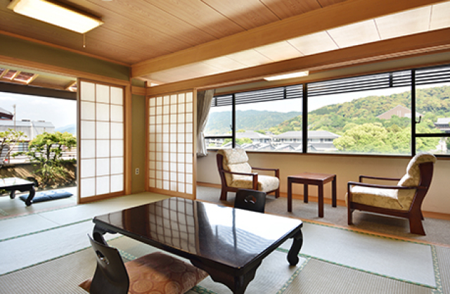 地上5階建て、22室の和室客室、60畳大広間・中広間、大浴場2箇所を併設し、個人利用のお客様から修学旅行生まで幅広いお客様をお迎えしています。