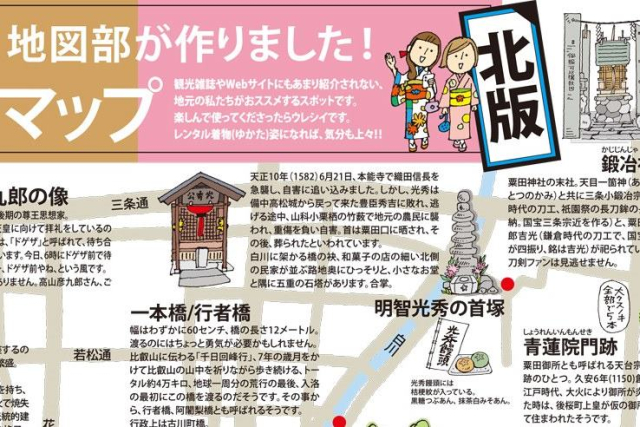 客室係が中心となって周辺観光案内図の制作も。京都の魅力を発信します。