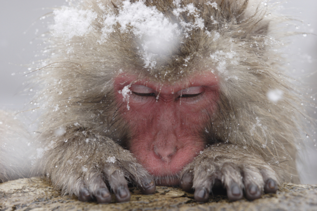 地獄谷で温泉につかるお猿さん。なんて気持ちよさそうな。。温泉って素晴らしいですね♪