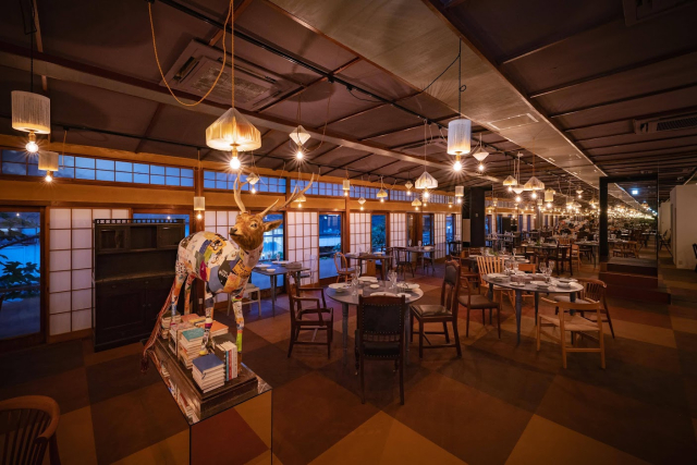 廃墟だった旅館の宴会場がこんな素敵なレストランに。