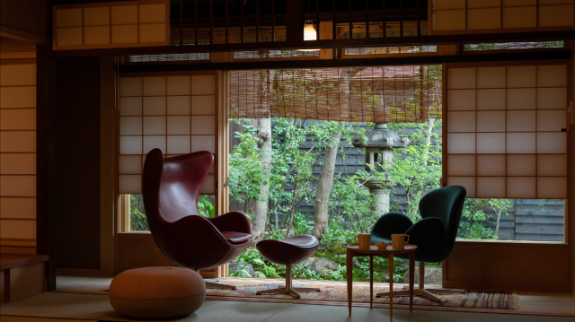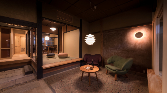 築100年以上の7棟の古い町家は、今後100年使い続けられるように快適にリノベーションされています。インテリアは北欧家具を中心としており、和と北欧が融合したラグジュアリーでくつろげる空間に。一棟貸しタイプが5棟、部屋割りタイプが2棟に8室あります。