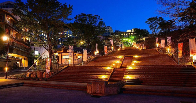 福一は伊香保温泉名物「石段街」から徒歩0秒、散策に便利です。
