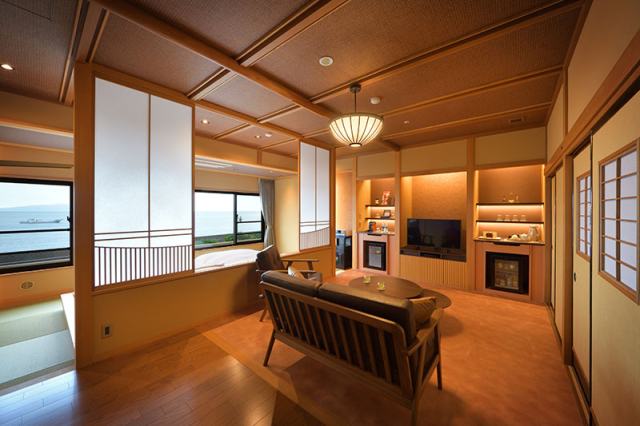 お部屋は全室オーシャンビュー!日の出から月の出まで刻々と変化する空と海の情景が魅力です。
