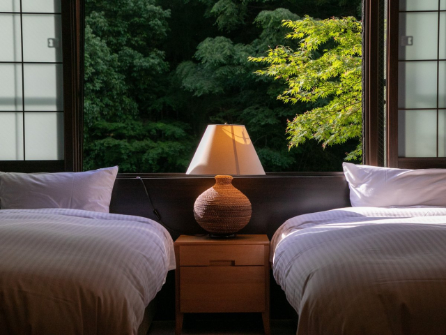 箱根屈指の広々とした優雅な客室。落ち着いた雰囲気でお客様を癒しの空間へといざないます。