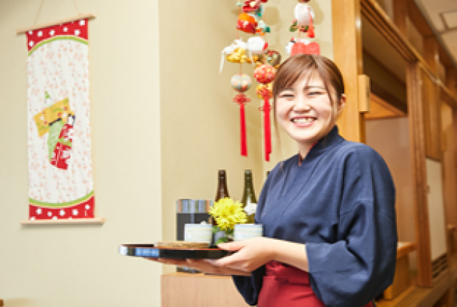 | 仕事内容 | ◆接客業務の全般 ・お出迎え、お見送り ・客室へのご案内および館内説明 ・お茶だし ・食事会場の準備 ・食事の配膳(料理説明あり)、下げ膳 ・オーダー取り、ドリンク作成 ・片付け、ホール清掃 ・その他付随する業務 *洋装および二部式着物を着用(女性) |