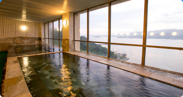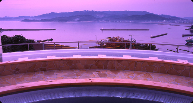 三河湾を一望する「露天風呂 美白泉」はまるで浮かんでいるような羨望のロケーション。
