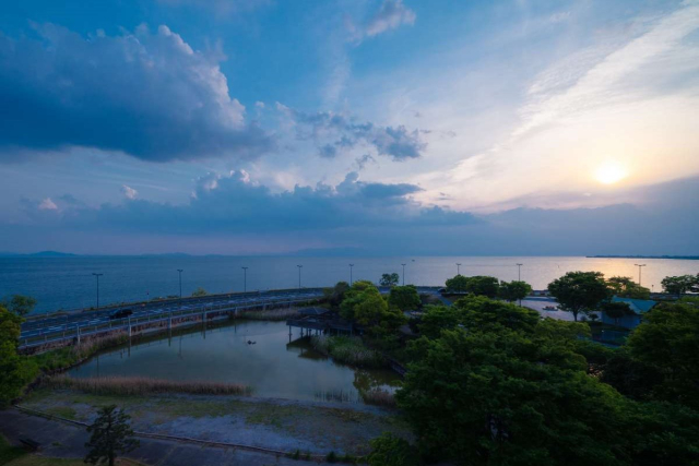 日本の夕陽百選として名高い景勝地、琵琶湖が美しい長浜。全室琵琶湖ビューのロケーションです!