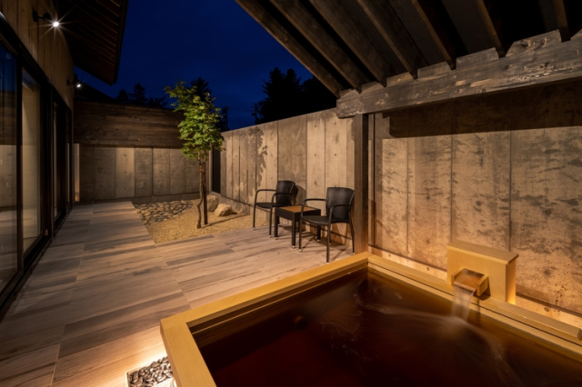 全24室全てがゆったり過ごせる「はなれ」をコンセプトとした個室で、圧倒的な贅の極みと洗練された空間を提供します。24室全てが露天風呂付で、源泉そのままの色の濃いモール温泉を楽しめる他、同旅館内には、十勝産食材をふんだんに使ったダイニングと鉄板焼きを提供するレストラン。