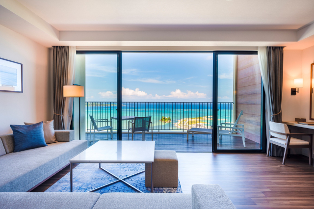 テラスを合わせた占有面積が70㎡を超える広々とした客室です。全室オーシャンビューの開放的な空間です!