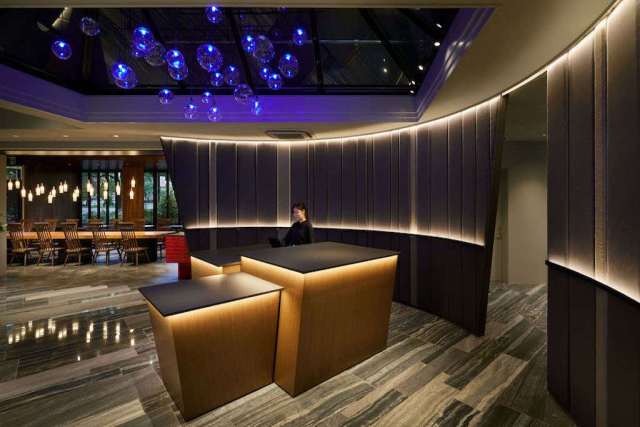 スタイリッシュなデザインのフロントデスクでお客様をお出迎えします。