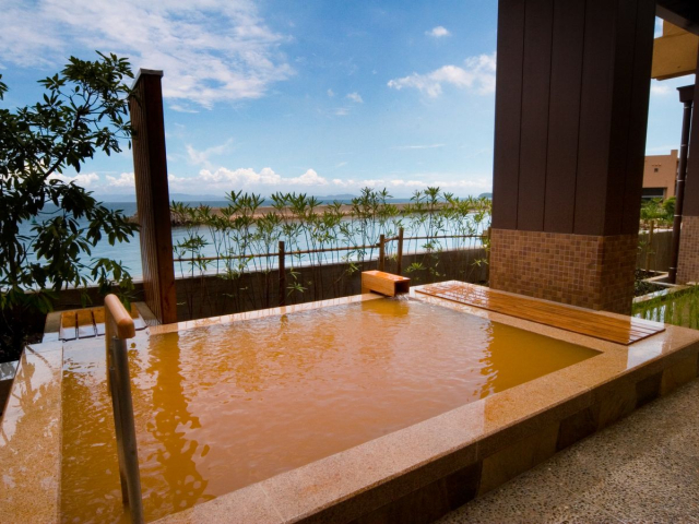 海のミネラルをたっぷり含んだ自家源泉の赤湯”古茂江温泉”