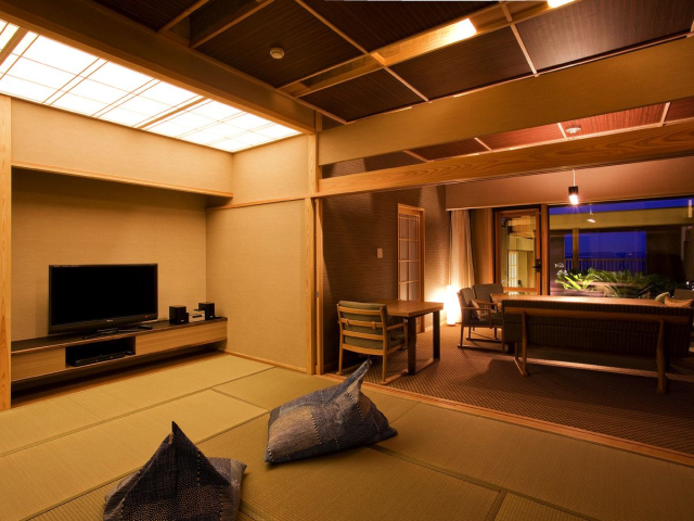 人気の客室”ヴィラ楽園”は80平米以上の広々としたくつろぎの空間