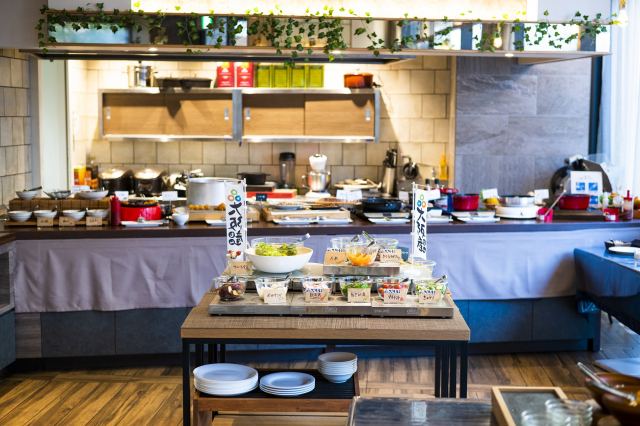 宿泊サービスの醍醐味、ビュッフェスタイルのお食事でお客様にお楽しみ頂いています。