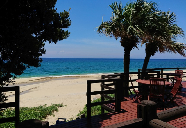 広々としたウッドデッキ。産卵のシーズンには、目の前までウミガメがやってくることも!