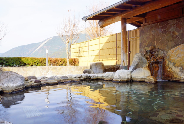 四季折々の阿蘇外輪山を眺めることができる露天風呂はお客様にもご好評です!