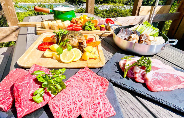 隣接するホテル棟で愉しむ美人の湯と謳われる温泉、大自然を満喫するアクティビティ、神奈川県足柄上郡・丹沢の地元食材を使用したグランピングBBQをご提供しています。