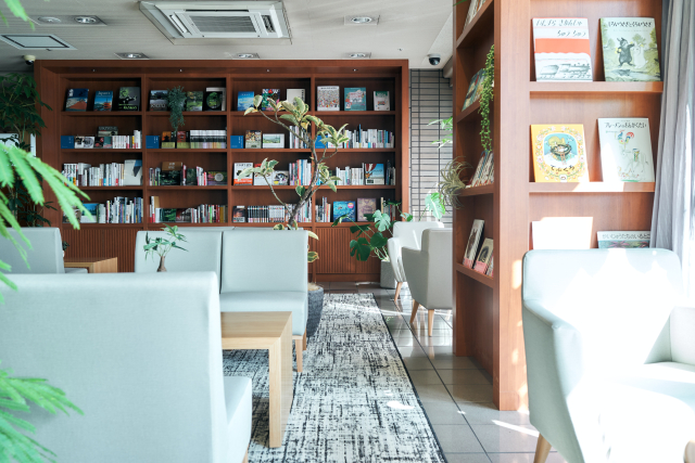 ブックラウンジにはさまざまな本を用意。お客様がくつろげるような空間を演出しています◎