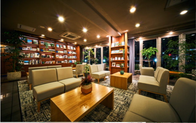 ブックラウンジにはさまざまな本を用意。お客様がくつろげるような空間を演出しています◎