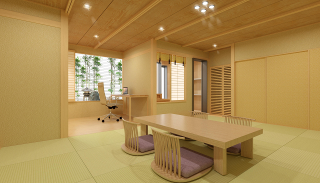 ご高齢のお客様も多いので、このように座卓をイステーブルに変更できるようにしてます。