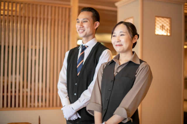お馴染み様はもちろん、当館に初めてご宿泊されるお客様も含めて、熱海の老舗旅館の客室スタッフとして、立ち振る舞いすべてを見られ、お出迎え時のご挨拶、和室の歩き方、扉の開け方、お食事出しのタイミングなど、200年以上続く老舗旅館として、高いおもてなしが求められます。また、お客様が来館される前に、事前情報を把握し、どのようなお客様かを想像することが求められます。