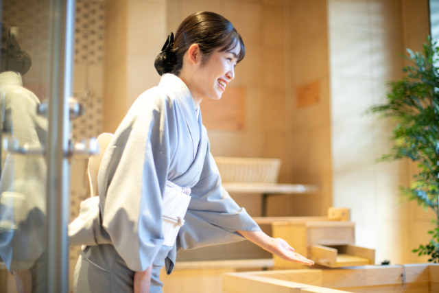 お客様がいらっしゃってから、会話をしつつお部屋へご案内をし、夕食を提供。 ご夕食の後は、お布団敷きの状況を確認、翌朝ご朝食ご提供をした後にお客様のお見送りをするまで、ご滞在中のお客様のお世話をするお仕事です。