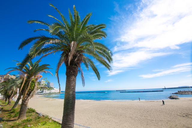 熱海サンビーチまで旅館から徒歩3分、寮から徒歩5分です。夏はビーチで思いっきりエンジョイ!