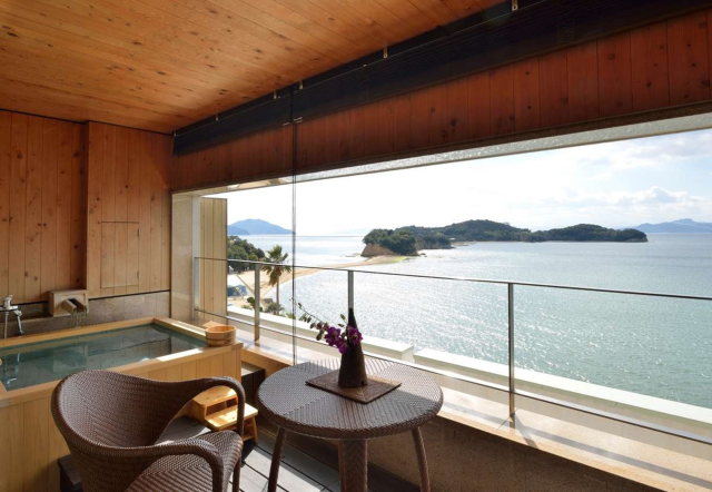 小豆島国際ホテルの客室は全て、美しい瀬戸内海を望むことのできるオーシャンビュー。