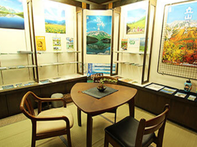ロビーの大きな窓ガラスからは、雄大な北アルプスの山々を臨める