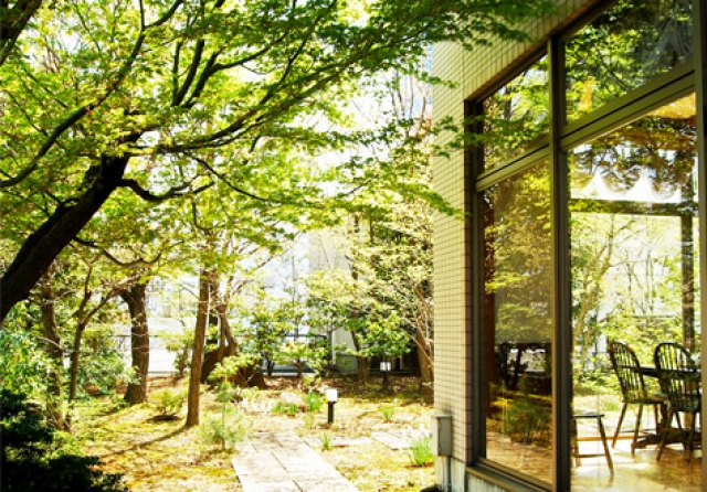 【ホテルの名前の由来にもなった中庭】四季折々の花や木の葉の色づき、木陰などが楽しめる
