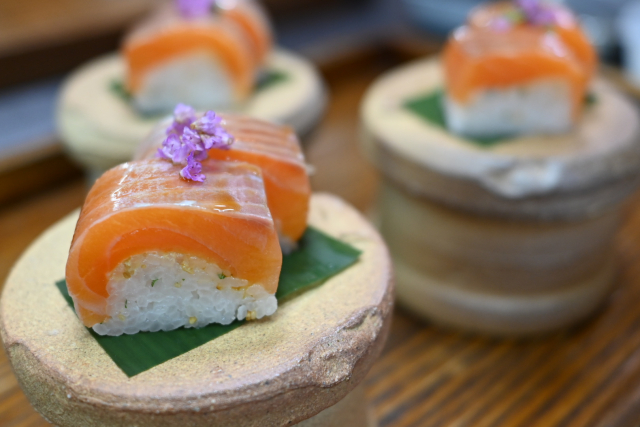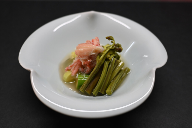 ・料理長は日本を代表する和食料理人・道場六三郎の店「ろくさん亭」で修行し、別の和食料理屋で店主を務めた経験のある31歳。経験してきたお店の献立と知識を活かしながら、新たなメニューであったり、組み合わせを常に模索しています。
