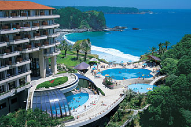 【ホテルジャパン下田】マリンブルーの海を望み、両翼には真っ白なビーチが広がります。
