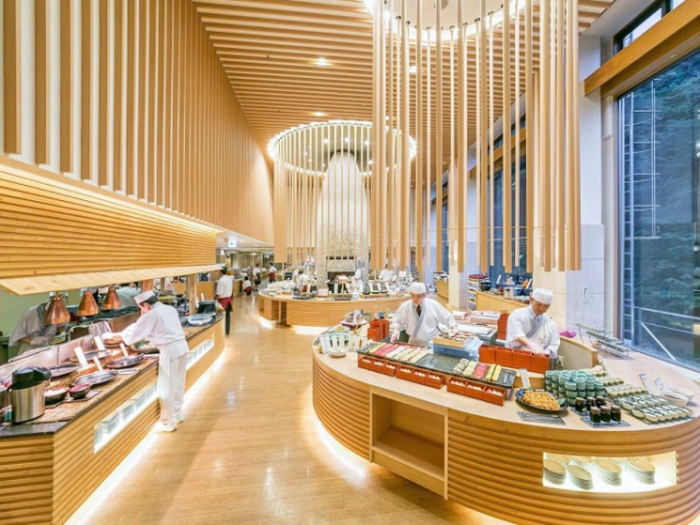 信州・蓼科高原の温泉リゾートホテル。レストラン中央には本格的な石窯を備えています。