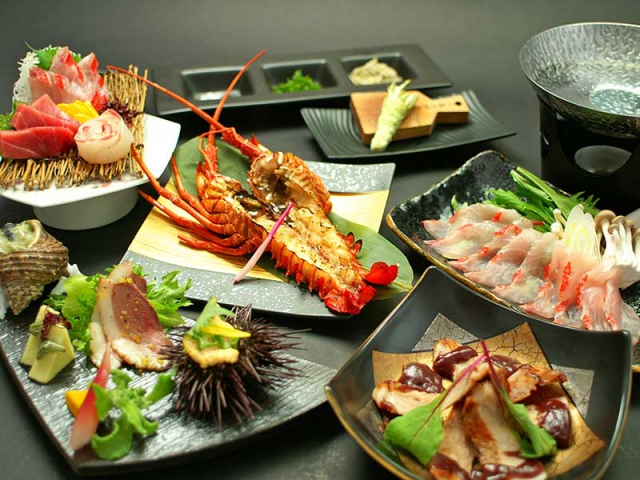 金目鯛や伊豆牛など、 地元食材を和食をベースとした、懐石料理を提供しています。