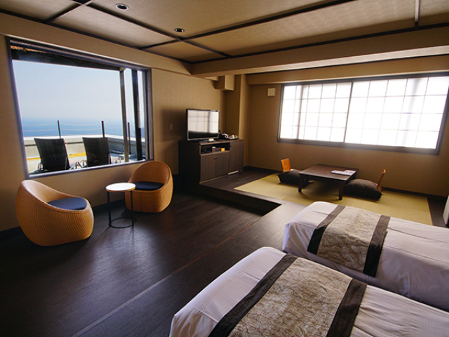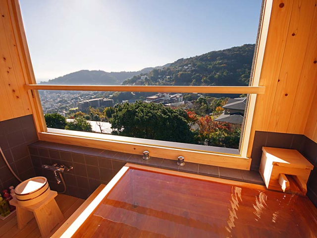 露天風呂付き客室からは熱海の絶景を一望できます。