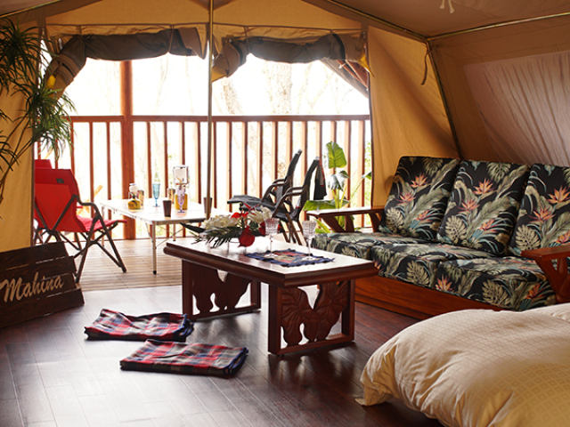 ”ハワイアンスタイル”をモチーフとしたグランピング施設です。