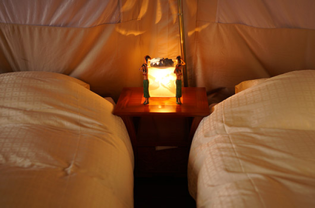 高級ベッドも設置されたキャビンテントは、全11棟。