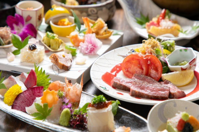 旬の野菜や地元の食材をふんだんに使用した、二本の葦束オリジナル懐石料理をご提供頂きます。