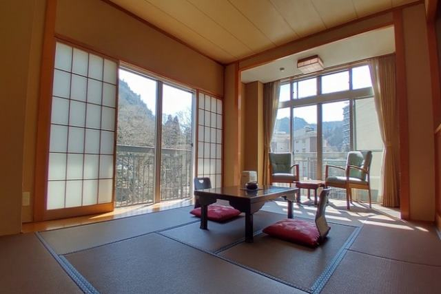 塩原の大自然を一望できる開放的な和室です。10室のみですのでゆったりとした接客がいただけます。