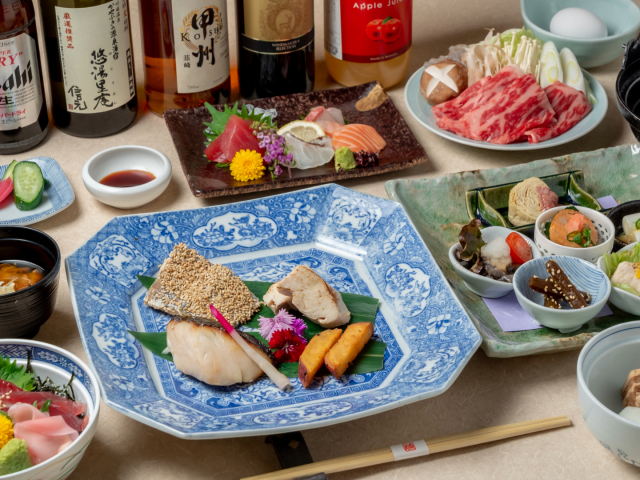【ご夕食】旬の食材と、地元の食材を活かした季節ごとに変わる創作会席料理をご提供しております。
