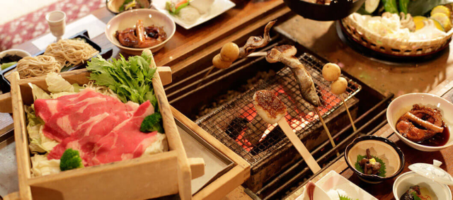 【お食事】山の恵みを囲炉裏端で頂く。贅沢な一品を提供しております!