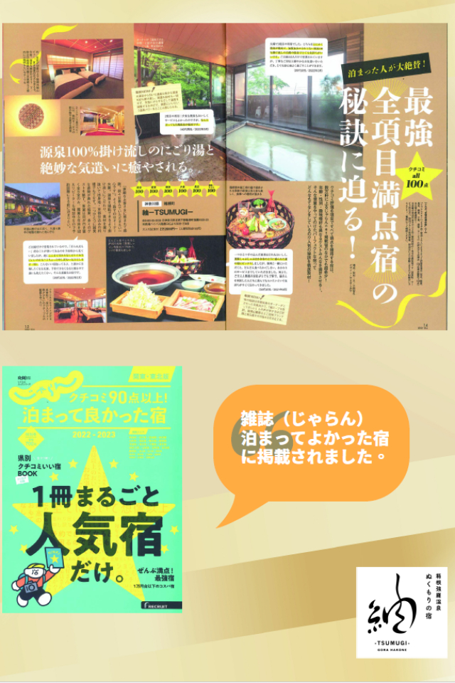 多数予約サイトより高評価!「泊ってよかった宿」として雑誌掲載されました。