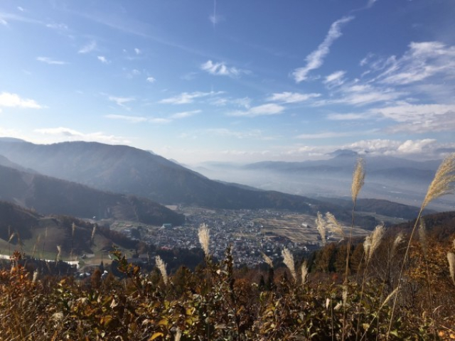 山からの野沢温泉の景色(秋)。スタッフがサイクリングした時に撮りました。