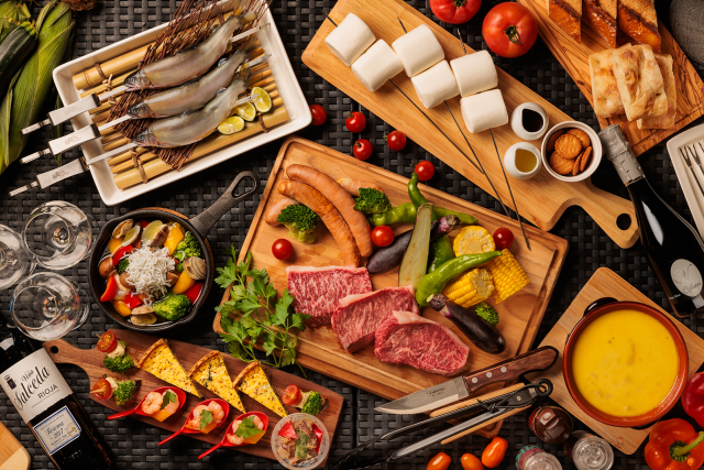 地元食材を使った会席料理以外にもグランピングでのBBQも好評!