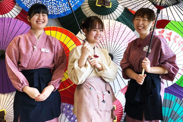 | 仕事内容 | 旅館スタッフ 受付・電話対応・予約業務をはじめ、お客様にとって良い旅行となる様々なサポートを行います! 「また来るからヨロシクね」「頑張ってね」「とても良い1日でした」などお客様から嬉しいお言葉をいただくことが多いです。 お客様と関わり、最高の1日をサポートしていく仕事です。 <フロントは旅館全体を把握する「旅館の顔」。> お客様が到着して最初に立ち寄るフロントは旅館の顔でもあり、旅館の印象を左右する重要な役割を担っています。 フロントの主な業務は、予約業務やチェックイン、チェックアウトまた他部署への情報伝達を滞りなく済むよう管理を行うことです。 また、一度お越しいただいたお客様情報を記録しておくのも大切な仕事の一つです。 <「おもてなし」の中心的役割を担うのが、接客係です。> 接客係の主な業務は、お食事会場での夕食や朝食の提供です。 調理場スタッフが作ってくれたおいしいお料理をただ提供するだけでなく、 よりおいしく召し上がっていただくために、それぞれのお客様に合った接客を心がけております。 お料理は、旅行の一番の楽しみにされてるお客様も多く、さらに私達の会話で喜んでいただけるよう、 社会情勢や観光地等の勉強も個々にはげんでおります。 「またあなたに会いに来るよ」と言われるようなスタッフになりたい!と言う思いで、 リピーター様を増やす為努力を惜しみません。 |